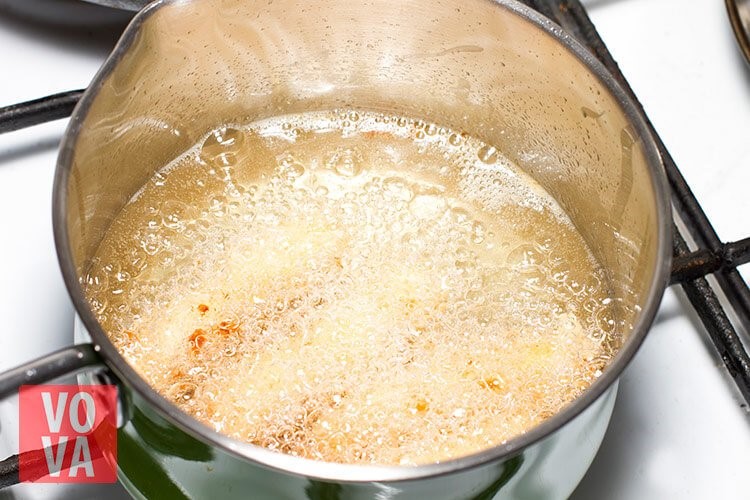 Далее нужно обжарить креветки. Если нет фритюрницы, можно воспользоваться обычной кастрюлей. Для этого наливаем достаточное количество масла (чтобы креветки покрылись полностью), ждем пока масло нагреется, отправляем наши морепродукты в кастрюлю и жарим 3-4 минуты до золотистой корочки.